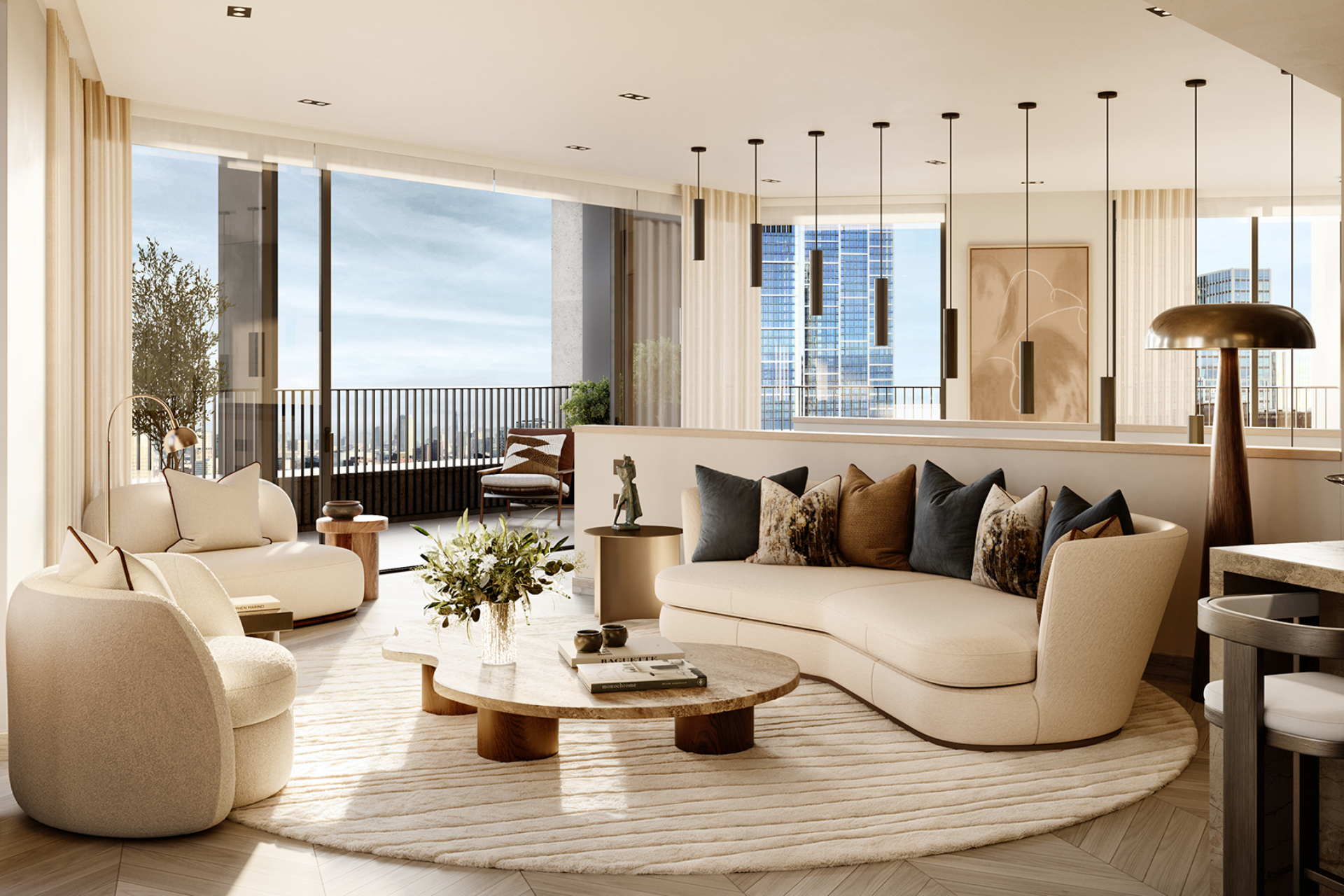 Here, considered design meets timeless elegance. Striking contemporary elevations frame exquisitely crafted interiors, while expansive private balconies open onto uninterrupted panoramas of the River Thames and the evolving London skyline.